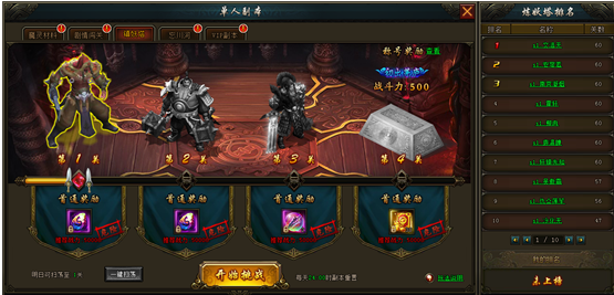 1、爬塔副本每天不限进入次数,一共有100层关卡。